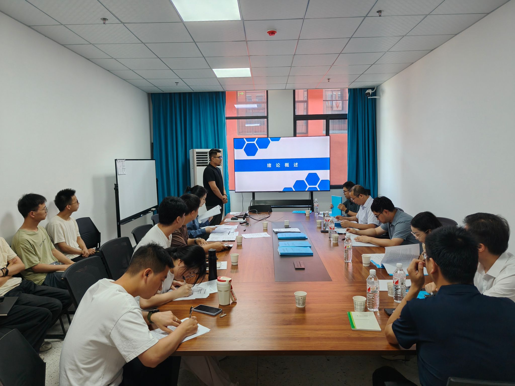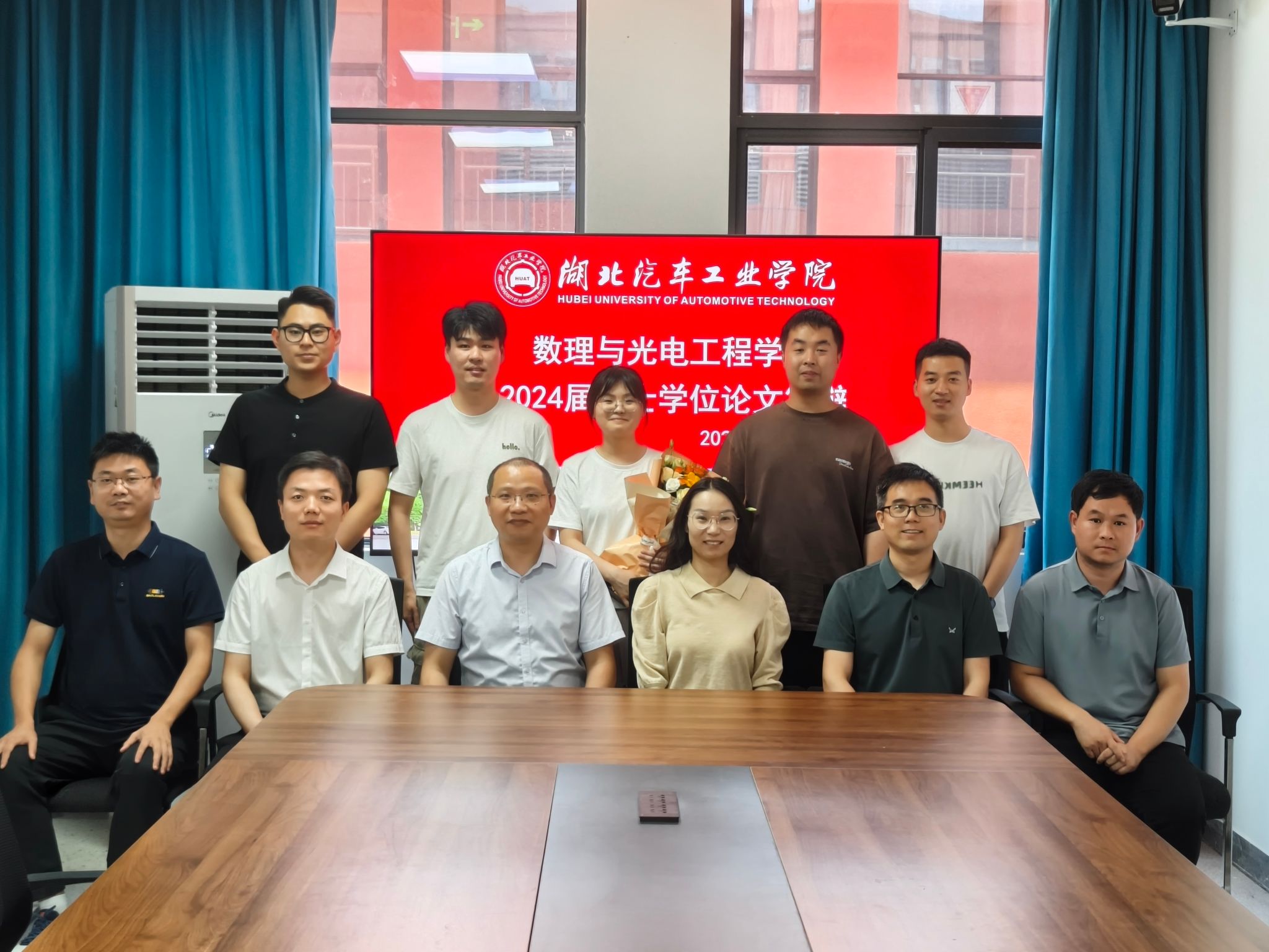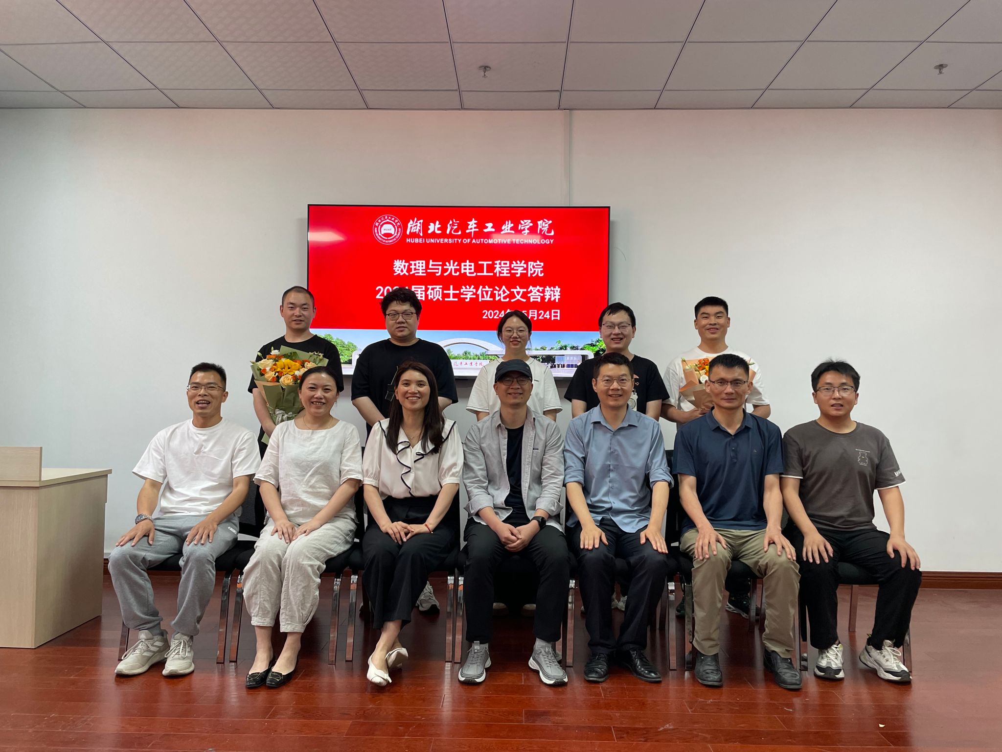 答辩分两组进行,第一组答辩委员会由数理公司王晴岚教授、马亚楠教授、荆涛副教授、罗啸副教授、杨伯平副教授,湖北医药公司朱本超教授组成;第二组答辩委员会由数理公司李建教授、张传坤副教授、高林副教授、童锐副教授、曹名磊副教授,汉江师范公司陈珍副教授组成。2024届10名应届毕业研究生全部参加答辩,2022、2023级全体在校研究生参加了现场旁听。