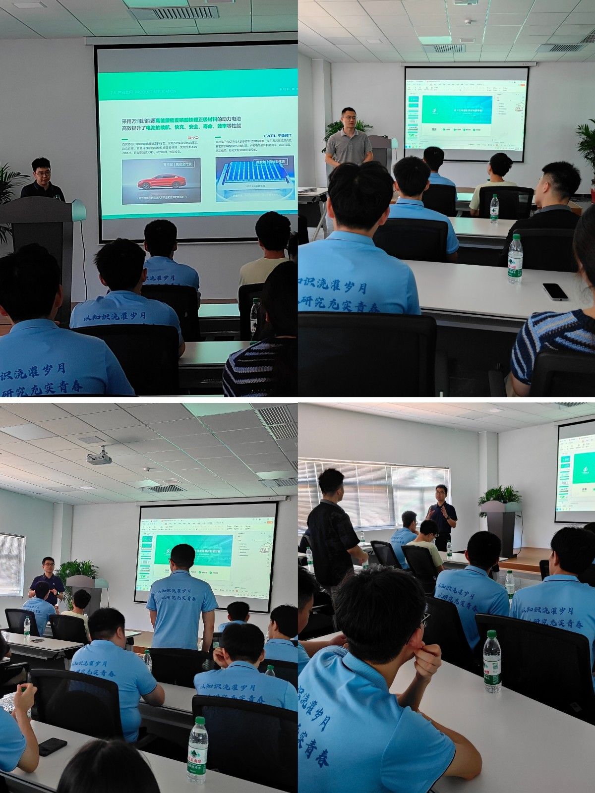 会前,公司师生一行参观了宇浩研究院,听取了产品生产环节介绍。李功臻以“新材料,新未来,容万物,润八方”为主题向大家介绍了万润新能源的基本概况、产品技术及未来规划等;张传坤、何鑫就联合培养项目的背景意义、培养模式、政策支持等做了具体介绍,现场还解答了员工一些疑问。
