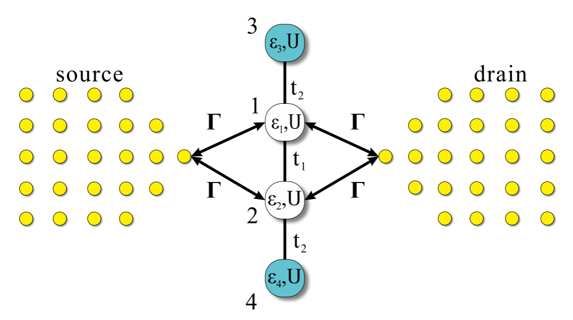 长程超交换耦合为实现量子信息和量子计算所需的可扩展量子处理器提供了有力的工具。以前的工作表明,这种长程相互作用对量子纠错以及减少量子算法中所需的操作次数非常有用,并对量子数据总线中的量子态传输十分有利。但长期以来,学术界关于长程超交换耦合对电子输运的影响研究很少。该项工作以一种四体自旋度跃分子(spin-crossover molecule)器件为研究对象,深入研究了其中的多种长程超交换耦合,并发掘了其对器件量子输运性质的显著影响。相关研究结果有望为高性能分子器件及半导体隧穿器件的设计提供理论指导。