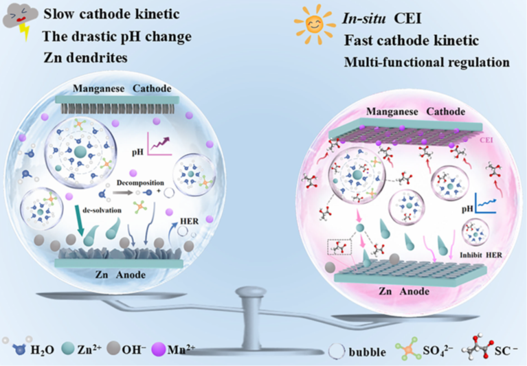 近日,国际材料领域顶级期刊《Advanced Functional Materials》(IF=19.0)在线报道了公司第一署名通讯单位题为“In-SituCEI Layer Fabricated by Multifunctional Carboxylate Additive Enabling the Reversible Jahn–Teller Distortion in Manganese Oxides”的研究论文。该研究针对水系锌锰电池在实际应用工况下,所面临因Jahn-Teller畸变导致锰溶出和结构不可逆转变,进而引发严重容量衰减的关键科学问题,首次提出了通过引入羧酸钠电解液添加剂(乳酸钠),在正极表面原位构筑阴极电解质界面层(CEI)的设计思路,协同解决了上述科学难题。