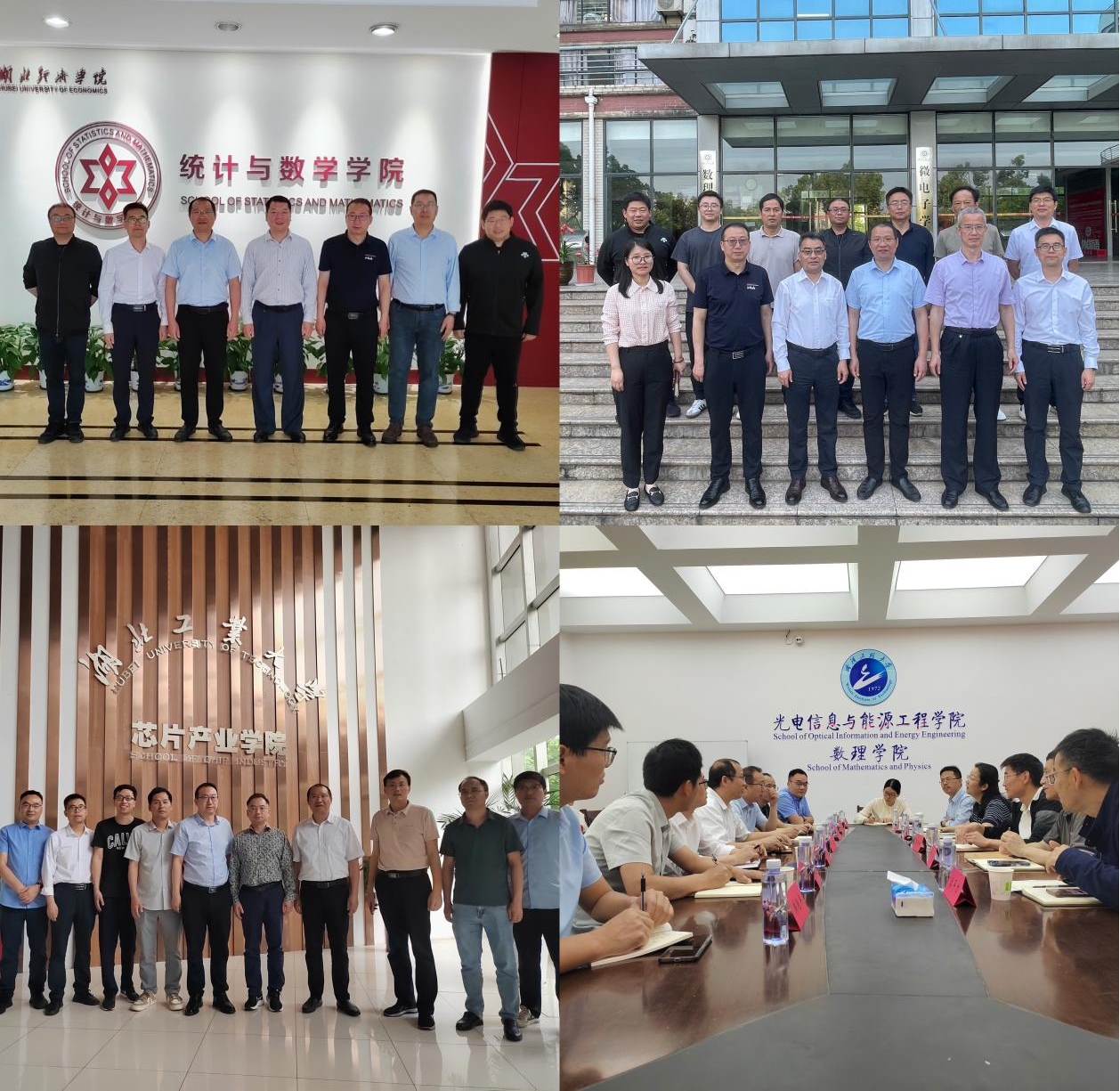 5月7日至8日,数理与betway西汉姆联官方网站经理李建带队先后赴湖北经济公司统计与数学公司、武汉纺织大学数理科学公司、武汉工程大学光电信息与能源工程公司、数理公司、湖北工业大学理公司,就全面落实新一轮本科公司产品审核评估、团队建设、湖北省重点实验室建设、芯片产业公司建设开展深入交流。