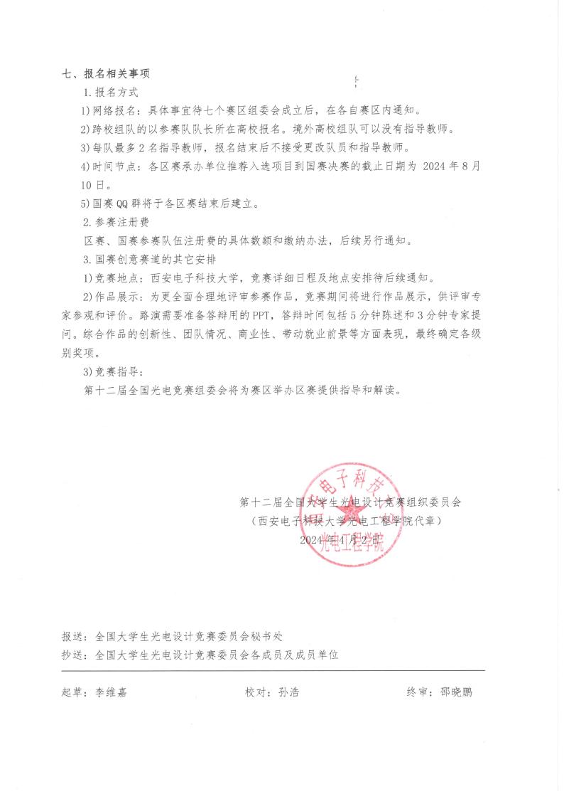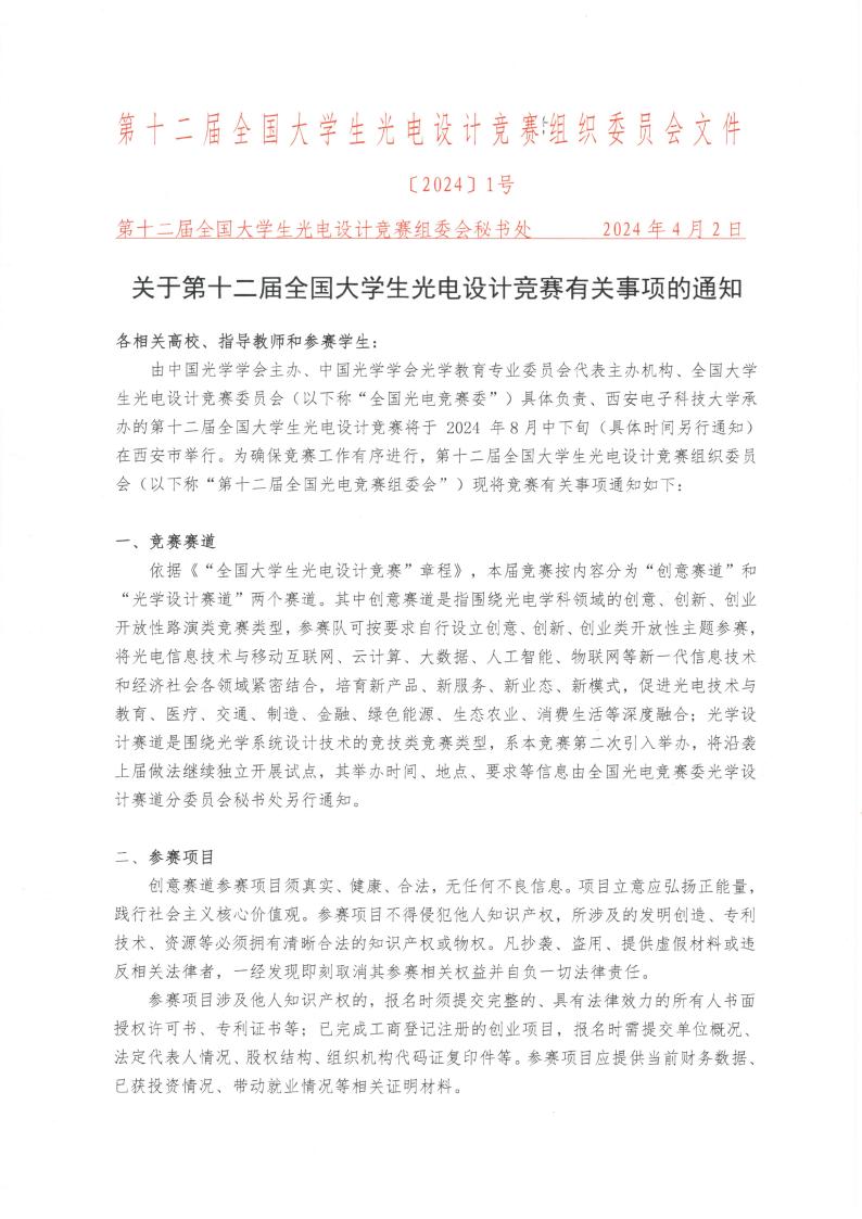 第十二届全国老员工光电设计竞赛将于 2024 8 月中下旬在西安电子科技 大学举行,赛事具体说明见下文附件。竞赛面向全校在校员工、专业不限。有意 参赛者,请加入 QQ 819751919,后期竞赛活动在群内通知。