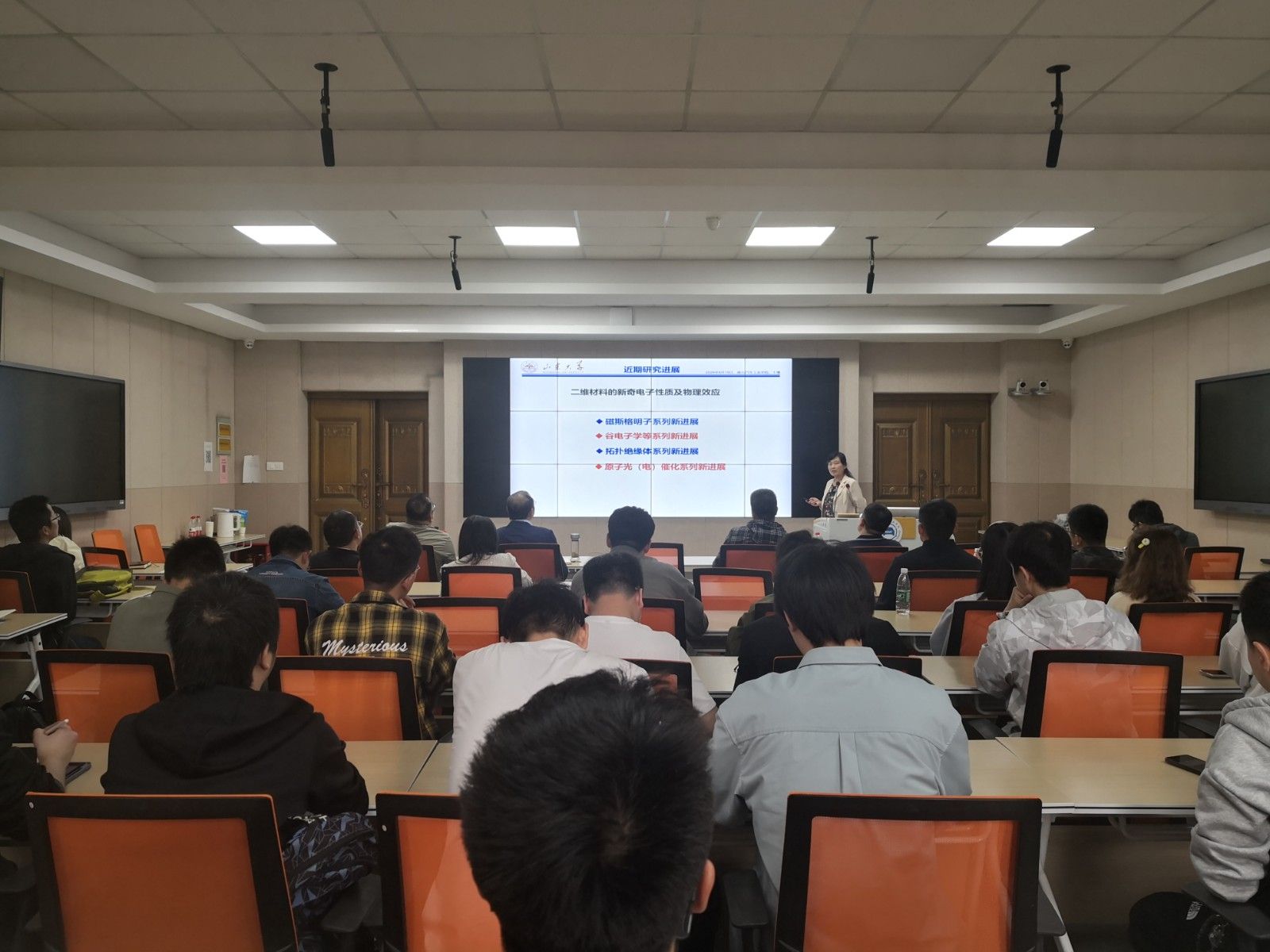 报告会上,戴瑛介绍了课题组人员组成情况、主要研究方向,并介绍了课题组在新型二维拓扑材料的设计和发现,层霍尔效应在二维材料的实现等方面的科学研究进展,阐明了理论计算在新型二维材料预测以及性能调控等方面的重要性。