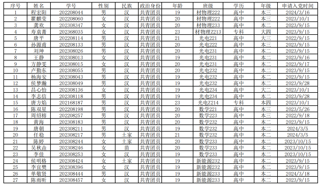 关于确定材物理222程宏阳等27名同志为2024年第二期入党积极分子的公示