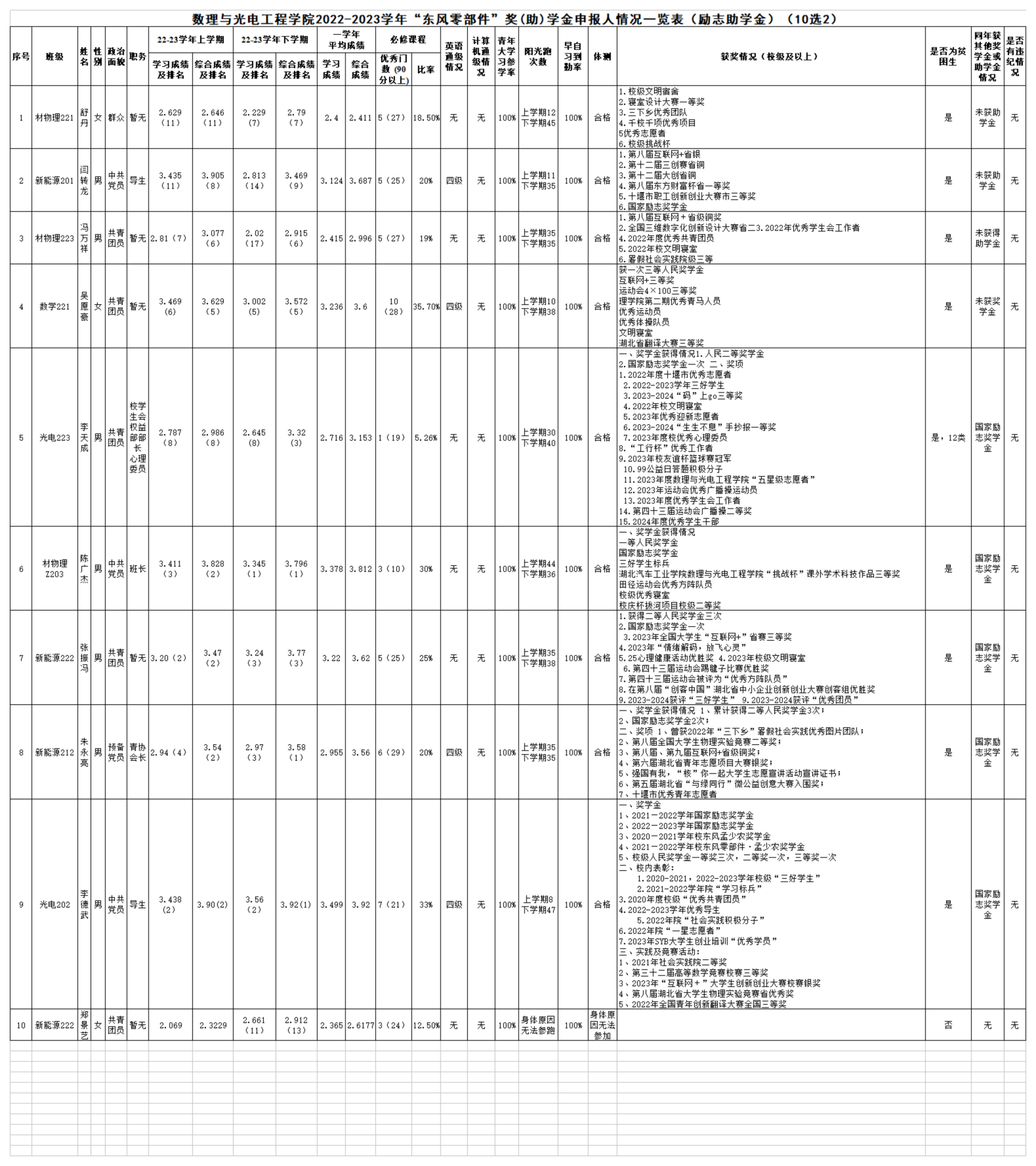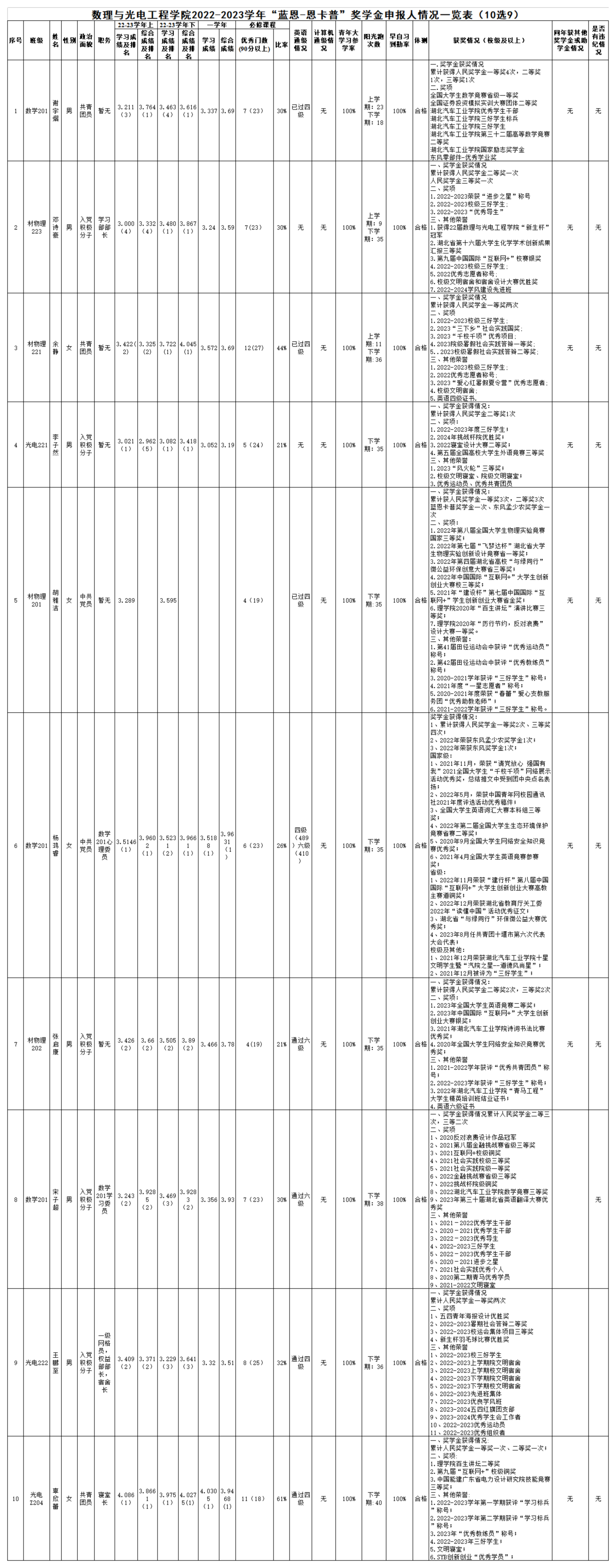 2022-2023学年数理与betway西汉姆联官方网站“蓝恩-恩卡普”奖学金、“东风孟少农”奖学金、东风零部件•孟少农奖(助)学金获奖员工初审候选人名单公示