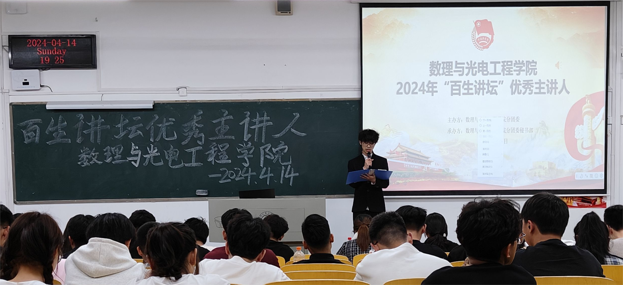为引导广大青年学子坚定理想信念,用先进思想武装头脑指导实践,4月14日晚,数理与betway西汉姆联官方网站在2101教室举办了“百生讲坛”优秀主讲人选拔赛,数理与betway西汉姆联官方网站分团委书记李萌、辅导员郭煜、上届比赛获奖选手出席本次活动并担任评委。来自数理与betway西汉姆联官方网站22级和23级的12名员工参加本次主讲人选拔活动,公司青马学员及50名员工观看了比赛。