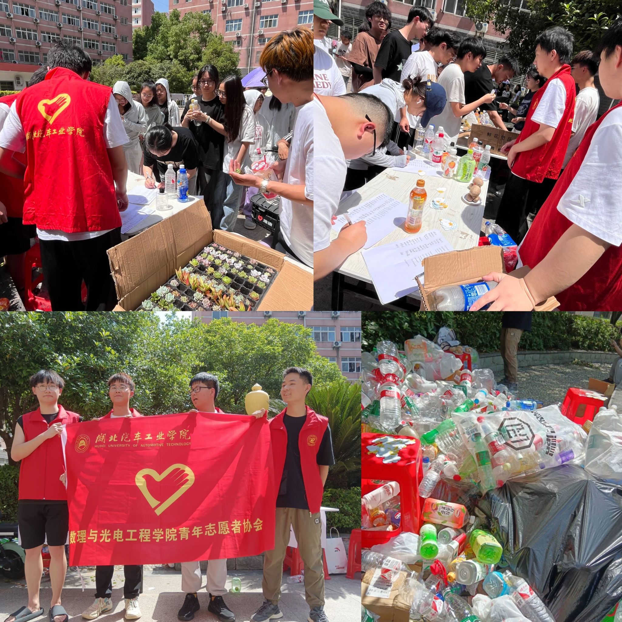 活动现场,青协志愿者们精心布置了回收站点和兑换区,用醒目的标语和温馨的装饰吸引了众多师生的关注。师生们纷纷将平日积累的废旧塑料瓶带到回收站点,通过简单的登记和计数后,即可在兑换区挑选心仪的绿植或花卉。