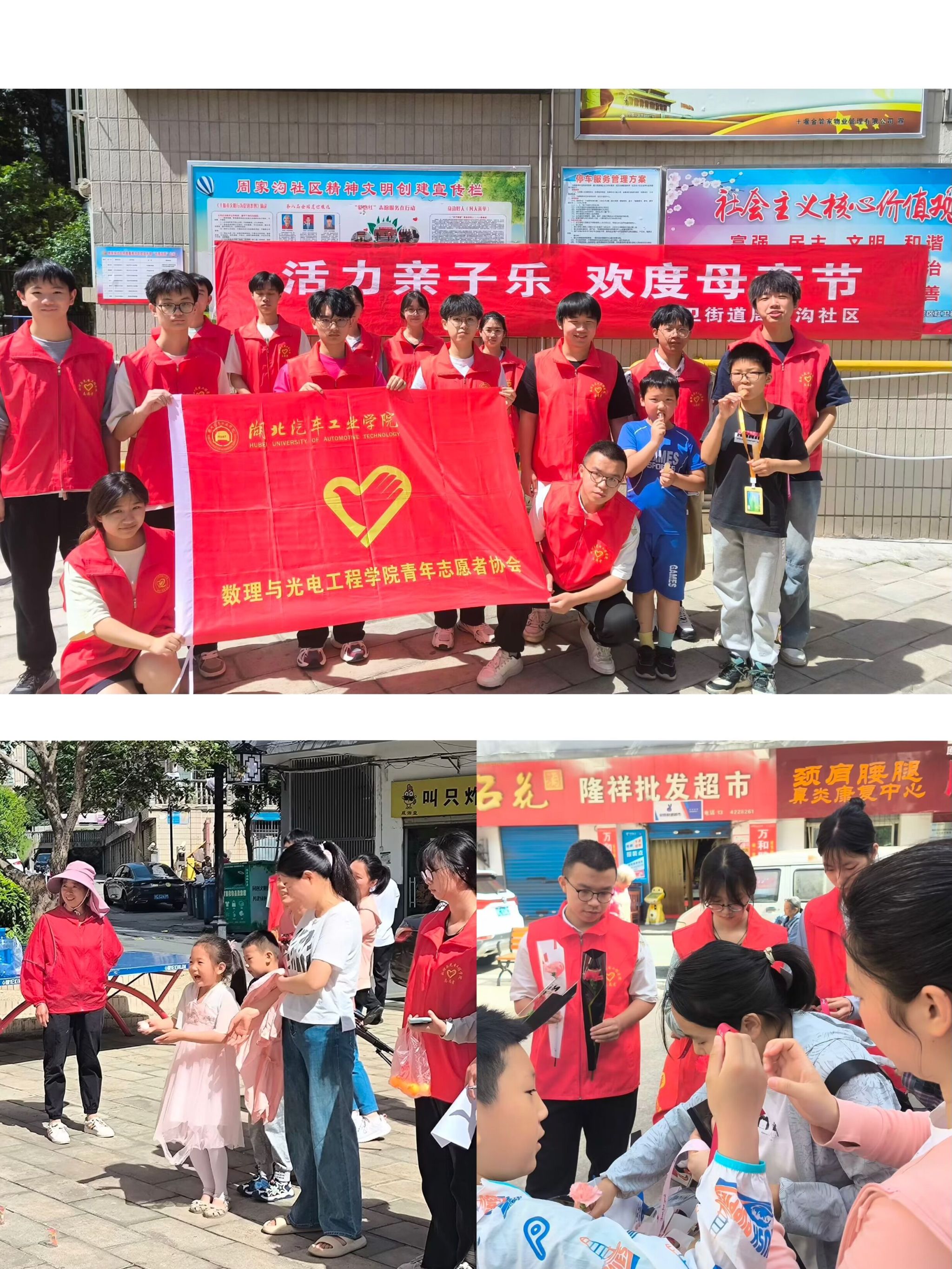 每年5月第二个星期日是母亲节,5月12日,betway西汉姆联官方网站数理与betway西汉姆联官方网站志愿者们携手周家沟社区在丹桂佳苑小区共同举办了一场别开生面的庆祝母亲节活动,以表达对母亲的深深敬意和无限感激。