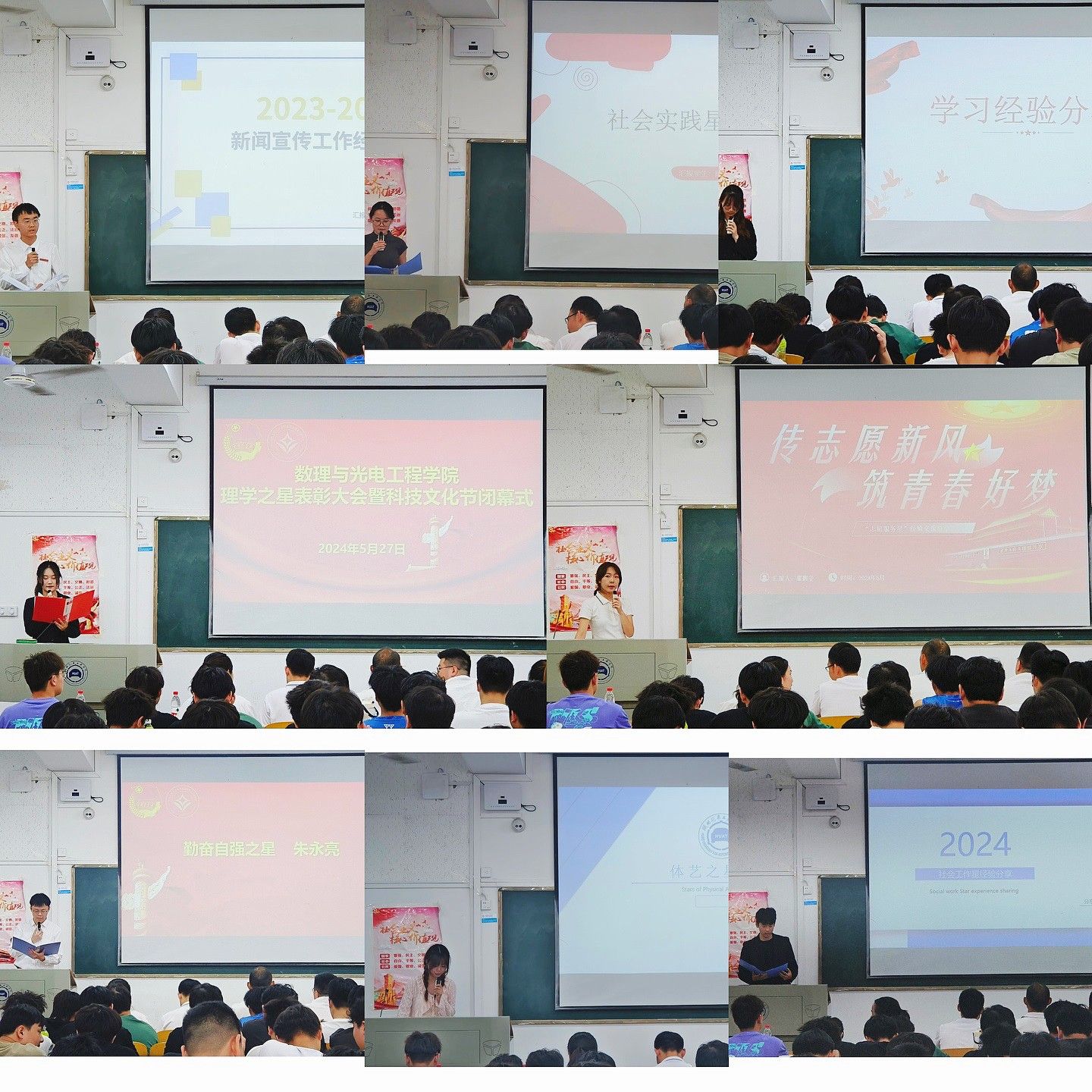 本网讯,为表彰过去一年在学习科研、志愿服务、文艺体育、社会实践等方面取得突出成绩的员工,进一步激发全院员工参加课外活动的热情,5月27日下午,数理与betway西汉姆联官方网站在2104教室隆重举行了“理学之星”表彰大会暨科技文化节闭幕式。数理与betway西汉姆联官方网站分党委副书记张朋刚、学工办主任卢旭、分团委副书记李萌、辅导员秦运来、郭煜及22级、23级部分员工参加大会。
