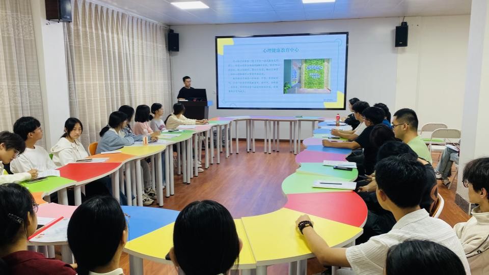 本次培训活动分为两个阶段进行。第一阶段由老员工心理健康中心何汇源主讲,他首先向心理委员们详细介绍了心理辅导中心的布局、功能及其预约流程,为新生参观心理辅导中心提供了重要的前期指导。随后,在何老师的带领下,全体心理委员实地参观了心理健康中心,深入了解了室内各种专业设备的功能与用途。此外,心理委员们还分组参观了各具特色的心理咨询室、体验了音乐放松室、沙盘辅导区、智能情绪宣泄仪以及多功能减压舱等先进设施。第二阶段由秦运来主讲,他从心理健康的定义、老员工心理健康现状、心理委员的职责、缓解心理压力的方法、给老员工的建议以及心理趣味小测验等多个方面,为心理委员们带来了全面而深入的讲解。秦运来通过生动的案例分析、有趣的互动环节,引导心理委员们深入思考心理健康的重要性,并鼓励他们积极履行心理委员的职责,为同学们的心理健康保驾护航。