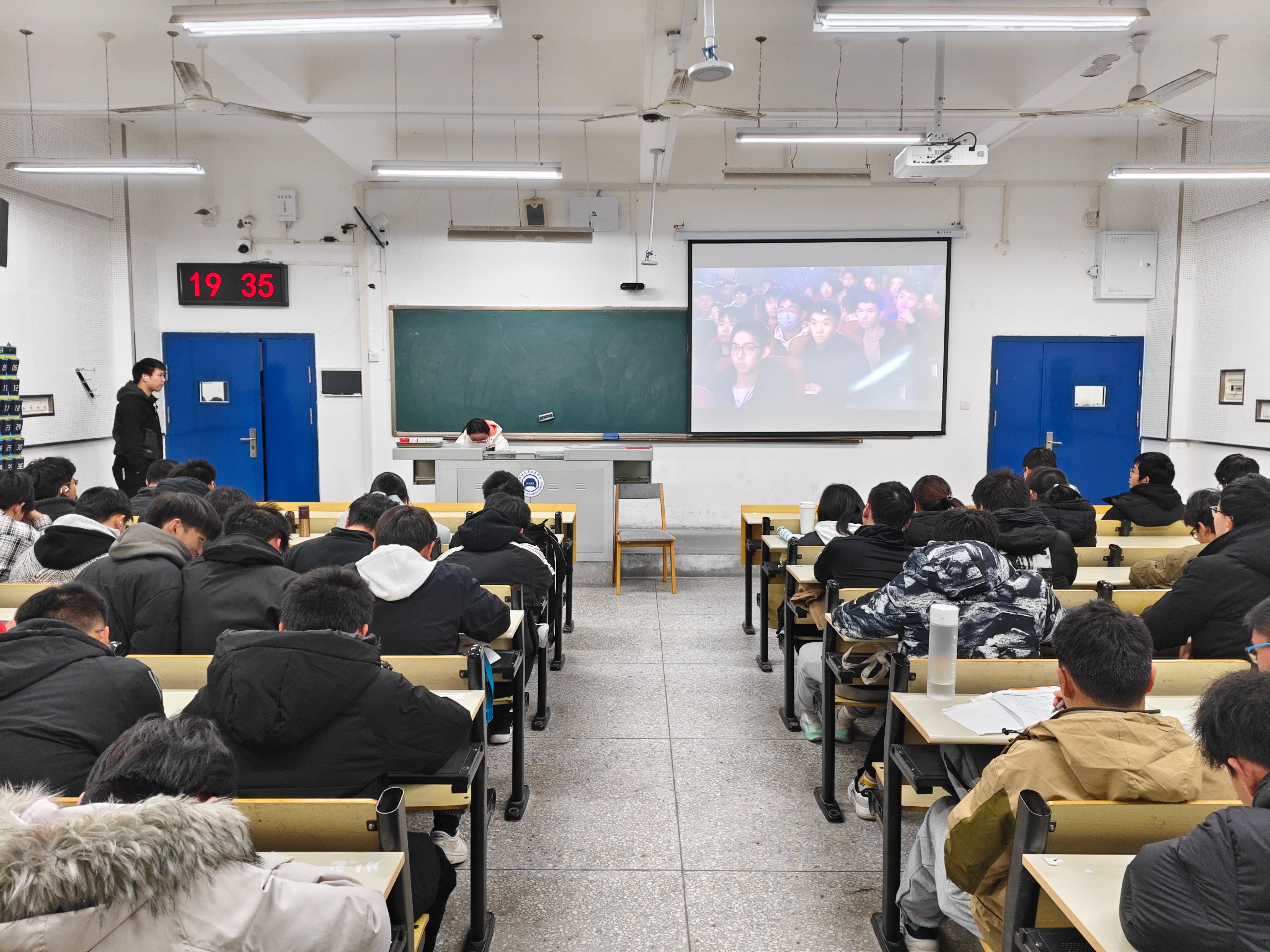 12月18日晚,数理与betway西汉姆联官方网站组织100多名员工在6205教室收看“湖北省征兵宣传进校园活动暨2025年征兵启动仪式”直播。各班级结合实际,以集中或分散形式组织员工通过主题班会、电脑、手机等形式同步收听收看。