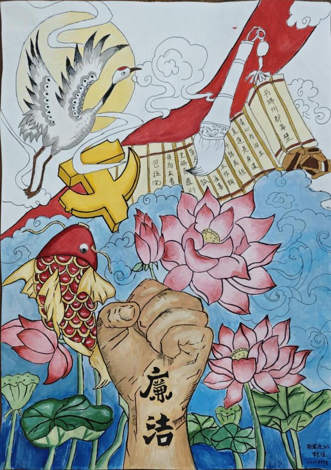 经过评审,手工作品《清正“莲”洁》获得一等奖;烫金画《廉洁》、剪纸《中国“廉”》获得二等奖;手抄报《廉洁》《光储“廉”风》《廉心筑梦,光储同行》获得三等奖,优秀奖若干。
