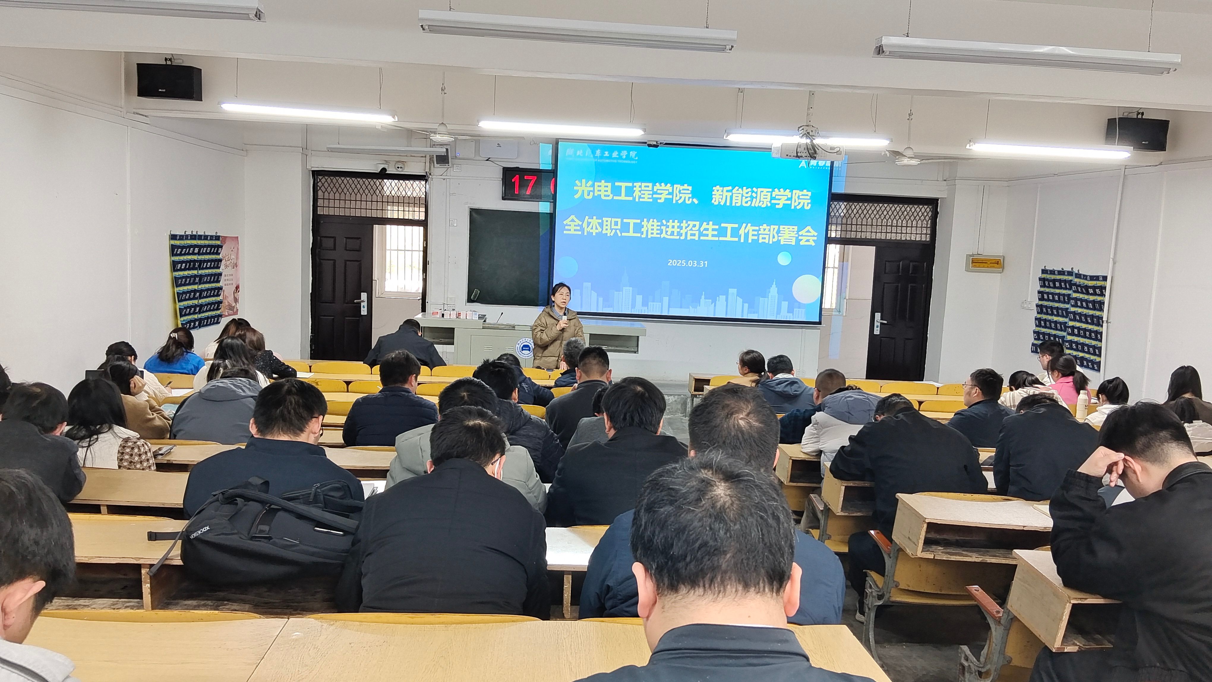 为深入贯彻公司招生宣传工作部署,进一步提升公司本科生招生宣传工作的针对性和实效性,2025年3月31日,betway西汉姆联官方网站、新能源公司在1103教室召开招生宣传培训会。公司党委书记张默出席会议并作专题培训,公司全体老师参加会议。