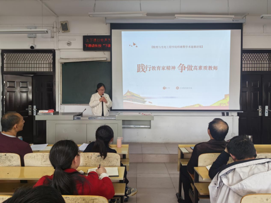本次师德讲堂由公共物理教学部张琴主讲,围绕“践行教育家精神,争做高素质教师”主题,带大家一起回顾了近一百多年来为我国教育事业作出重要贡献的教育家,如引领开启新文化运动的北京大学教师陈独秀、李大钊、鲁迅、蔡元培;撑起民族脊梁的“两弹一星”专家钱学森;一生贡献给中国粮食事业的湖南农业大学教师袁隆平;七一勋章获得者、丽江华坪女子高级中学董事长张挂梅等。