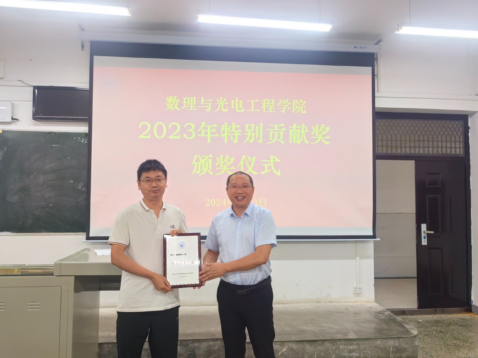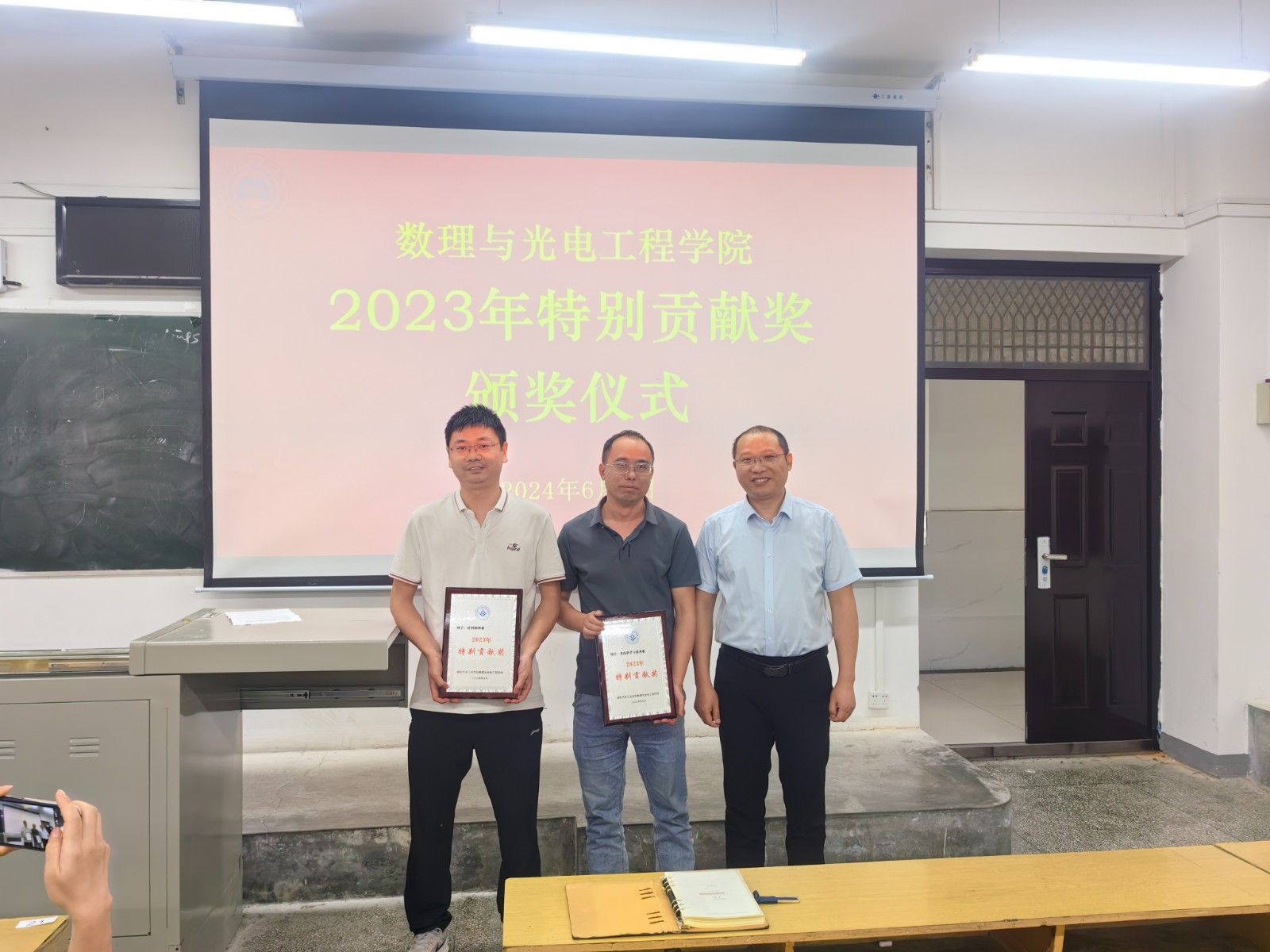 为充分发挥榜样引领示范作用,进一步激发广大教师干事创业热情。6月3日,数理与betway西汉姆联官方网站组织全体教职工在1103教室举办公司2023年特别贡献奖颁奖仪式。仪式由经理李建主持。