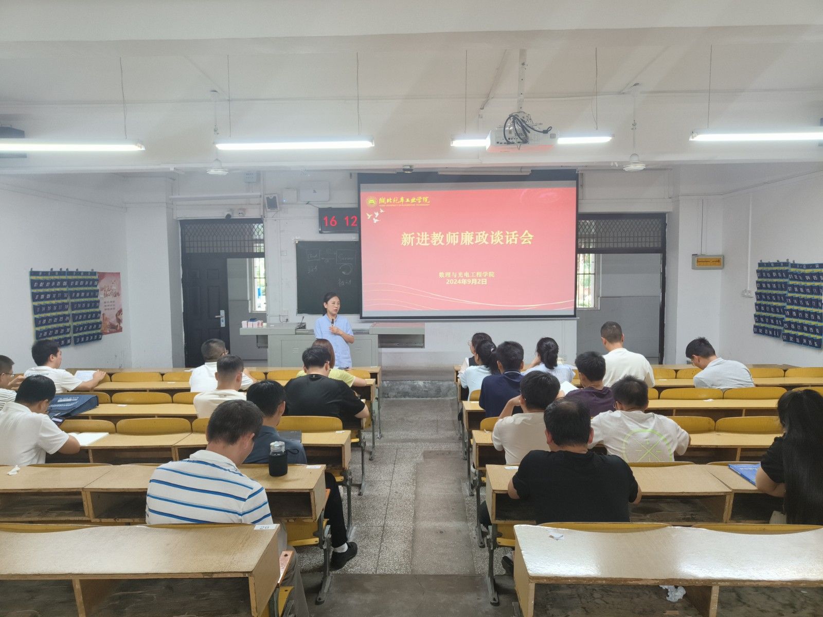 9月2日下午,数理与betway西汉姆联官方网站在第一教学楼1103教室召开了新进教师廉政谈话会,分党委书记张默与2023年以来新入职的20余名教师进行了集中谈话。会议由分党委副书记张朋刚主持。